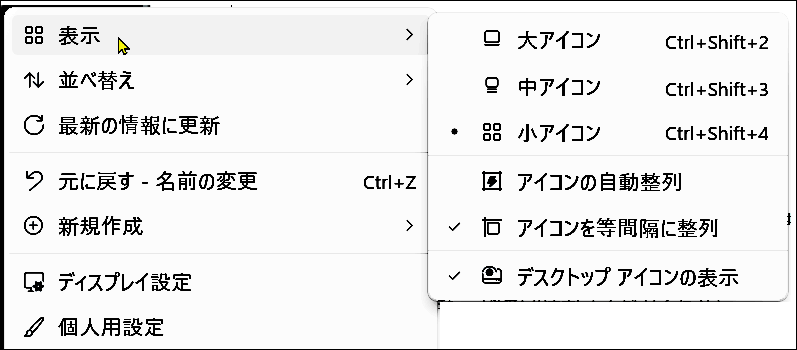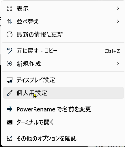 ①デスクトップで「右ボタン」クリックするとメニューが表示される
