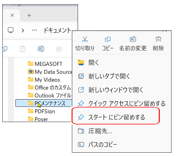 電源アイコンの隣に表示するフォルダーを指定できる。
