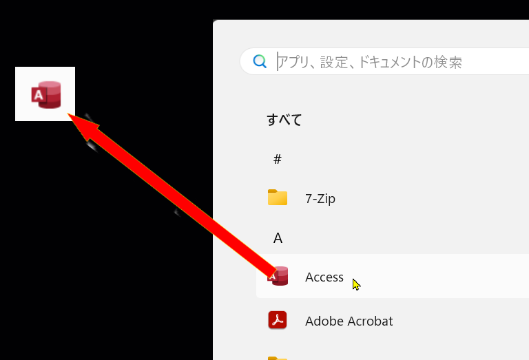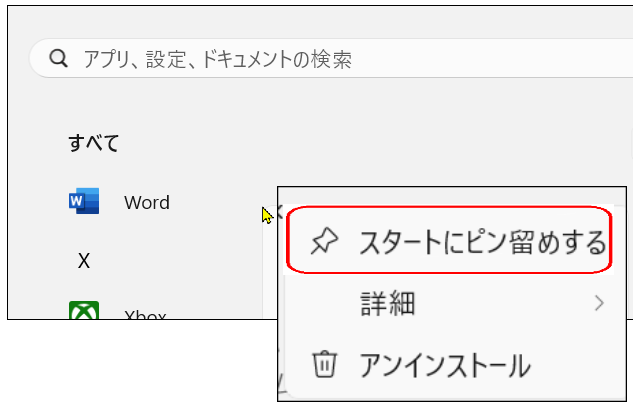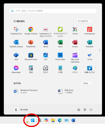 「スタート」ボタンをクリックするとスタート画面(アプリ一覧)が表示されます。