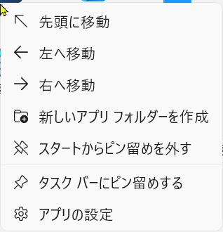 設定アイコンを右クリック 「タスクバーにピン留めする」でタスクバーにピン留めされる