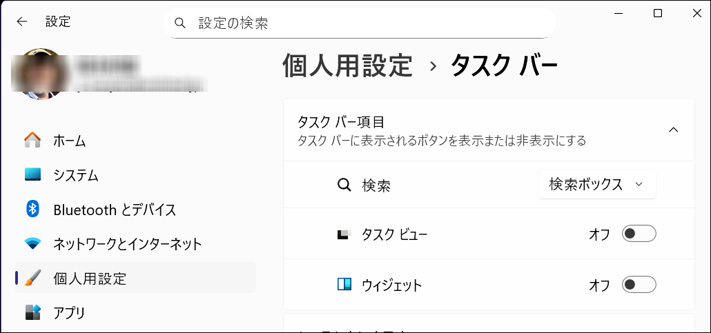 ③タスクバー項目から非表示にしたいアイコンを [オフ] にする