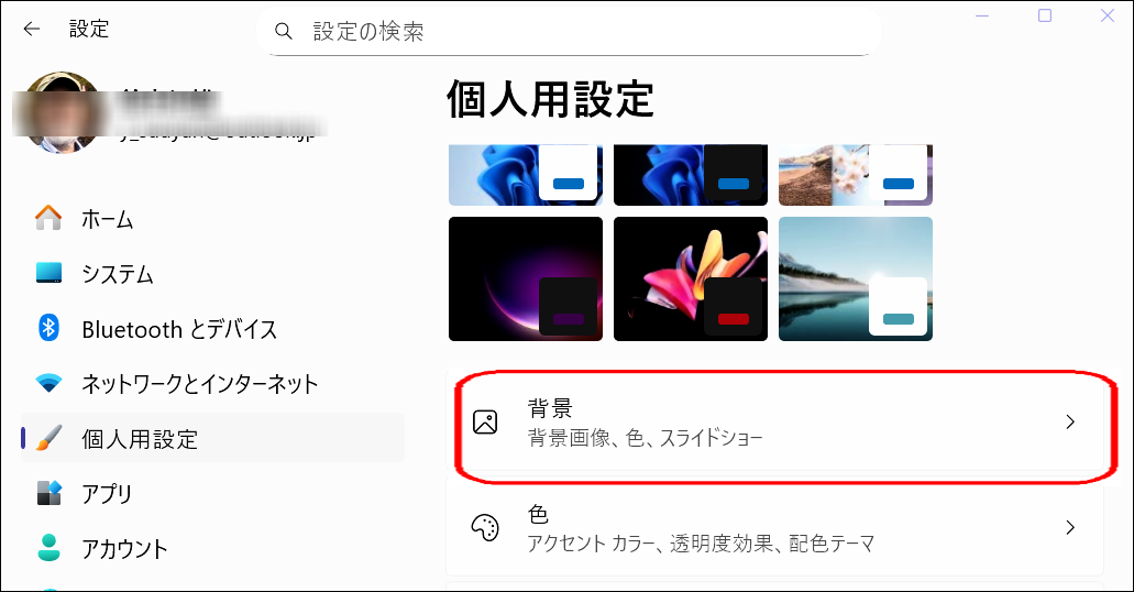 ④「背景をカスタマイズ」項目で「画像」を選択する